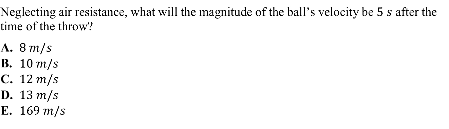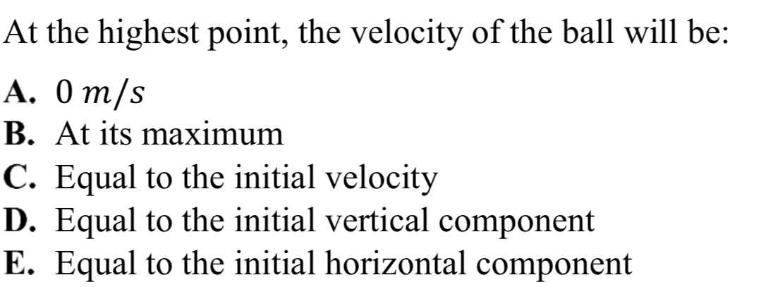 the ball’s initial velocity is 6 𝑚/𝑠 , and the horizontal component is 5 𝑚/𝑠.